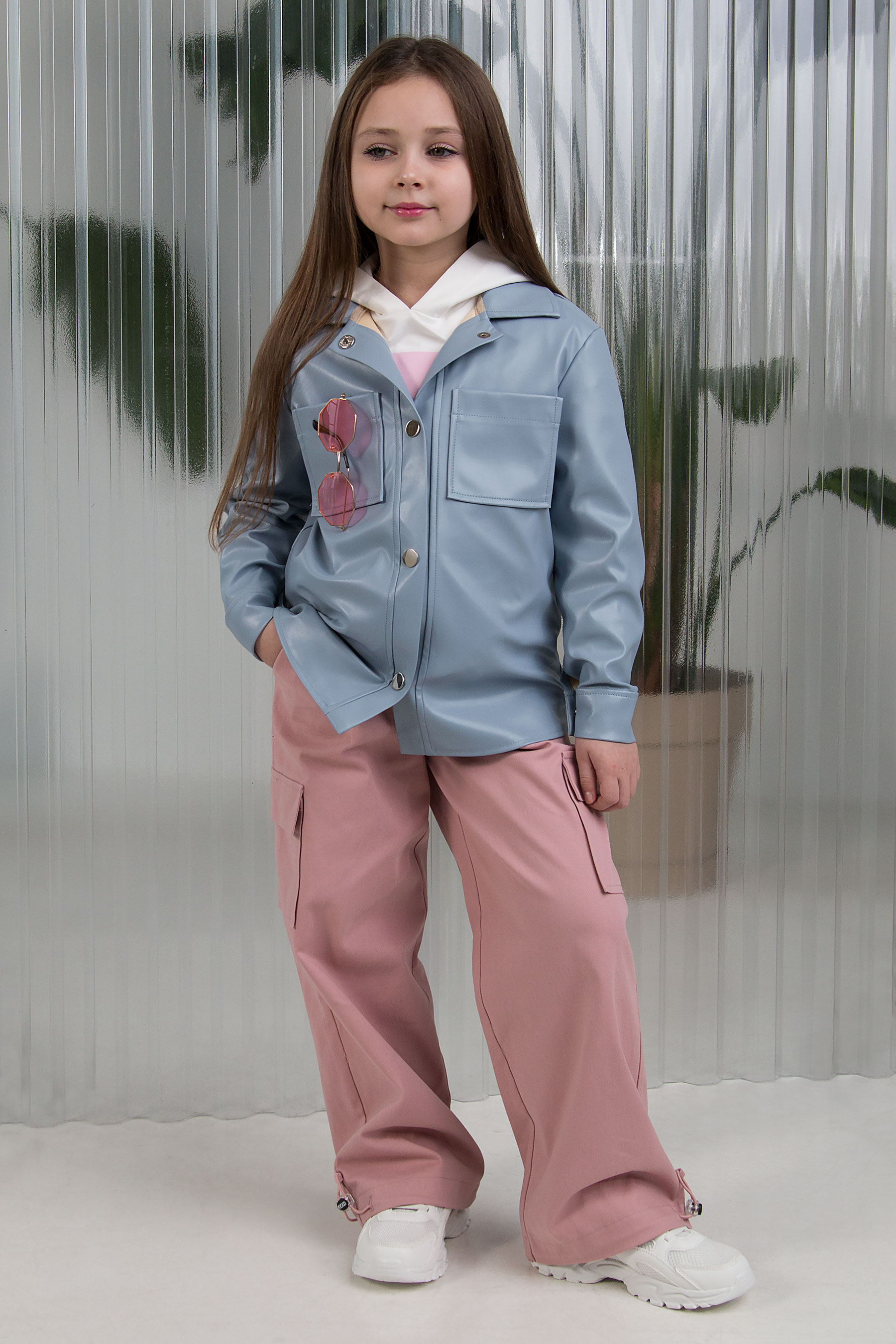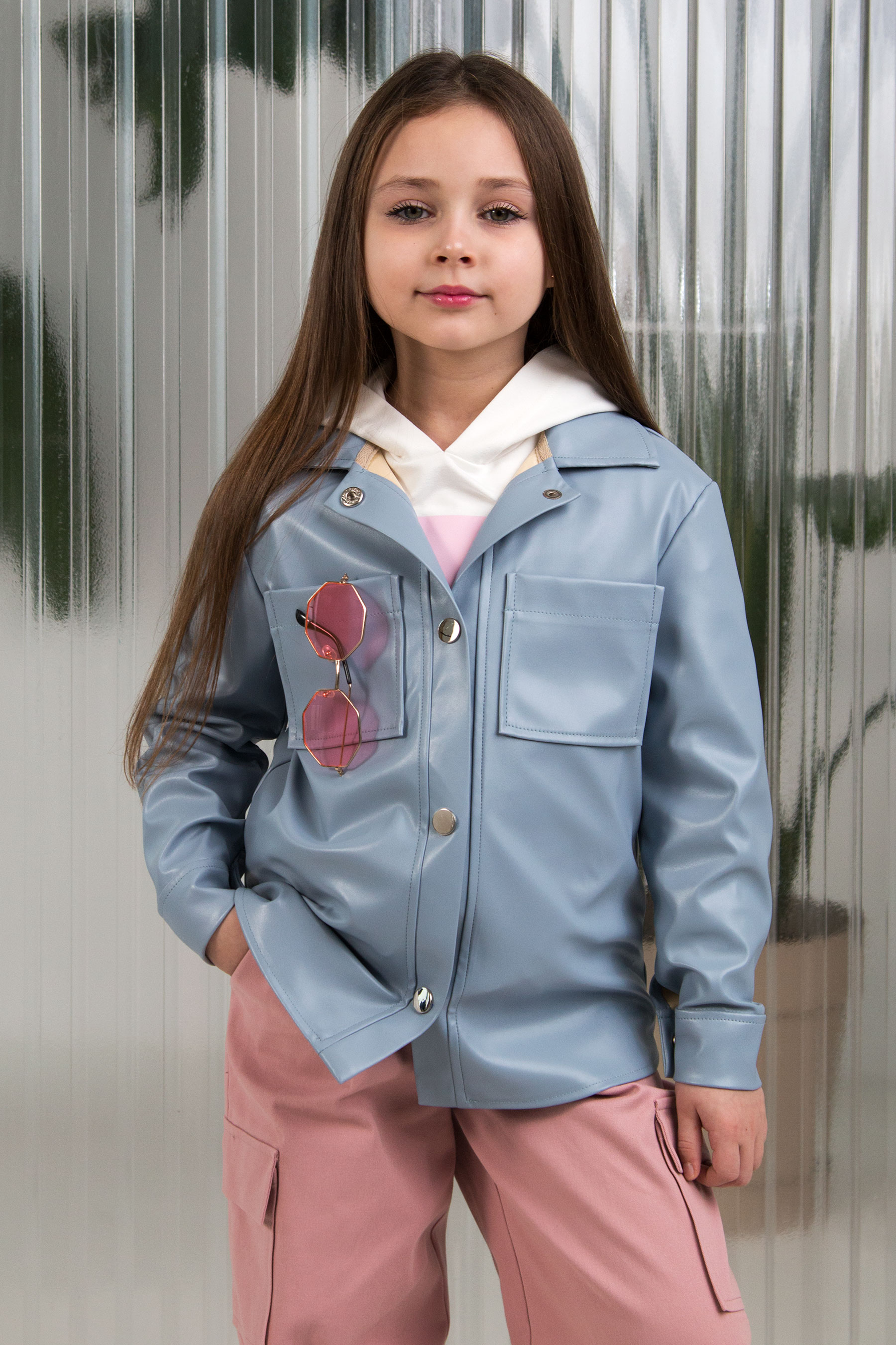 Сорочка з екошкіри створює ефект розкішної простоти — виглядає стильно, впевнено й сучасно. Матеріал має легкий блиск і гладку фактуру, що додає образу виразності. Вільний крій у поєднанні з металевими кнопками та накладними кишенями формує трендовий силует. Універсальна модель, яка однаково добре виглядає і в дуеті з штанами , шортами або з спідницею.