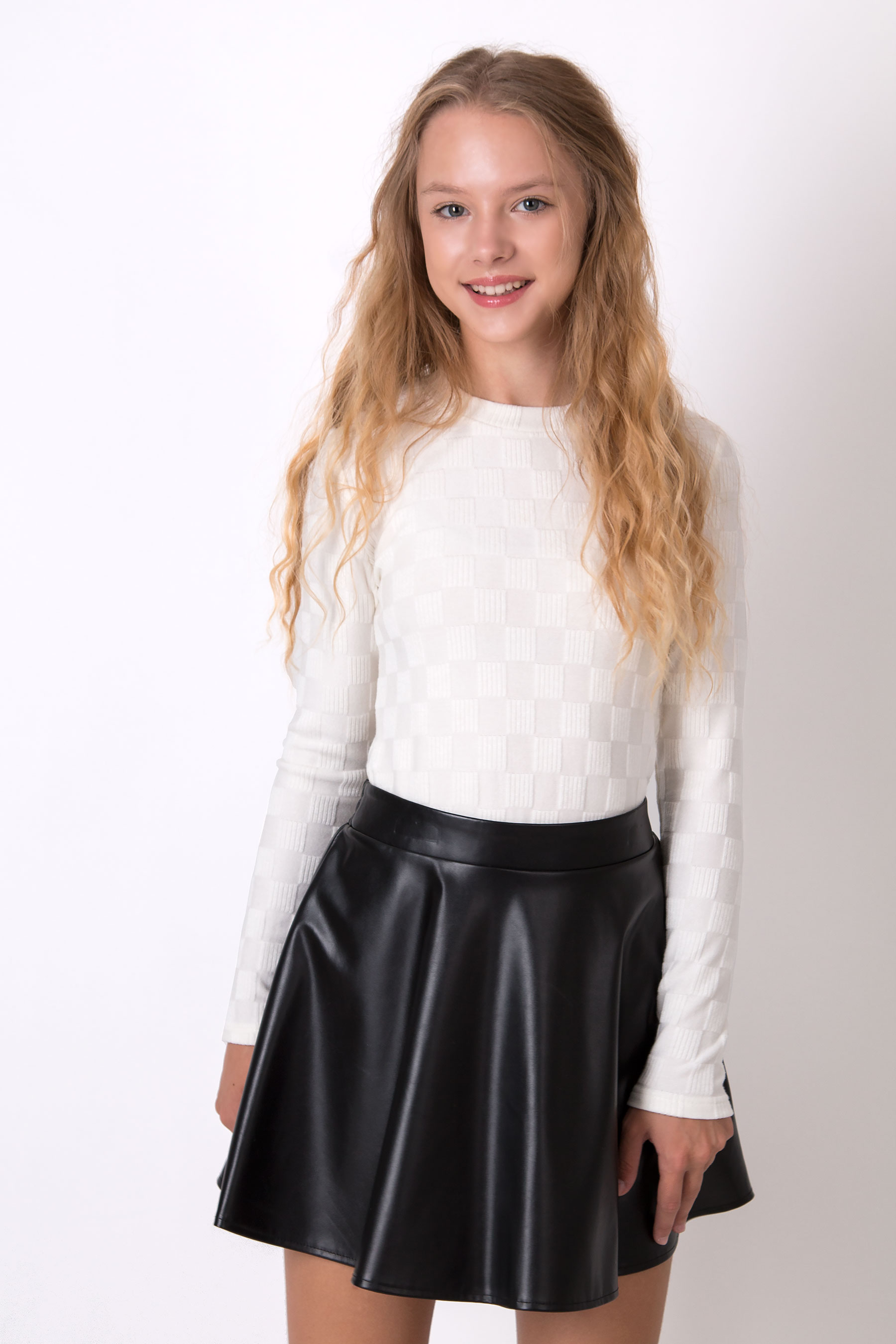 Лонгслів із трикотажу ангора з фактурним геометричним візерунком. Модель м’яка та приємна до тіла, з класичним приталеним кроєм. Гарно поєднується як зі штанами, так і зі спідницями чи жакетом — універсальна база на щодень.