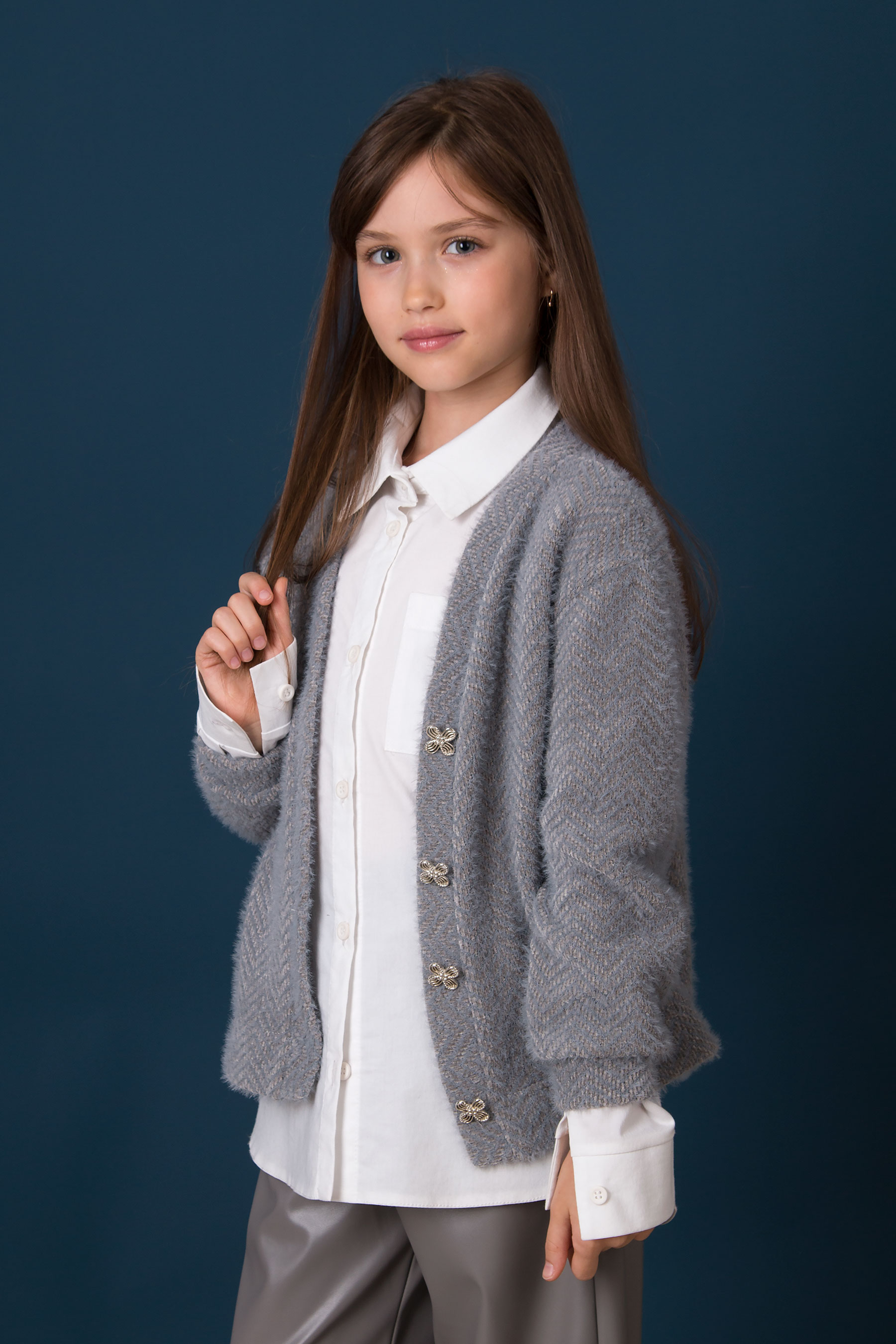 Кардиган із м’якого трикотажу “махра” — теплий, приємний і затишний. Блискучі гудзики у формі квітки додають виробу ніжності.Легко комбінується з базовими речами — від сорочки до сукні. Теплий, стильний і зручний для щоденного носіння.