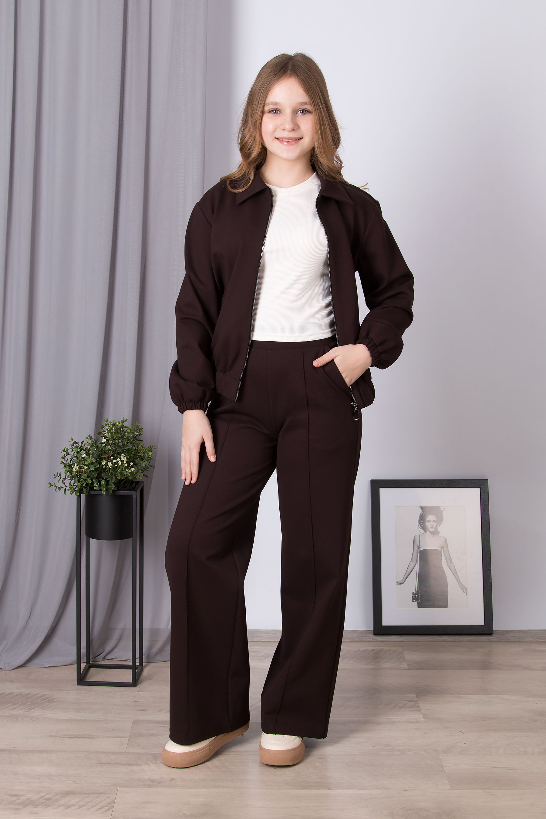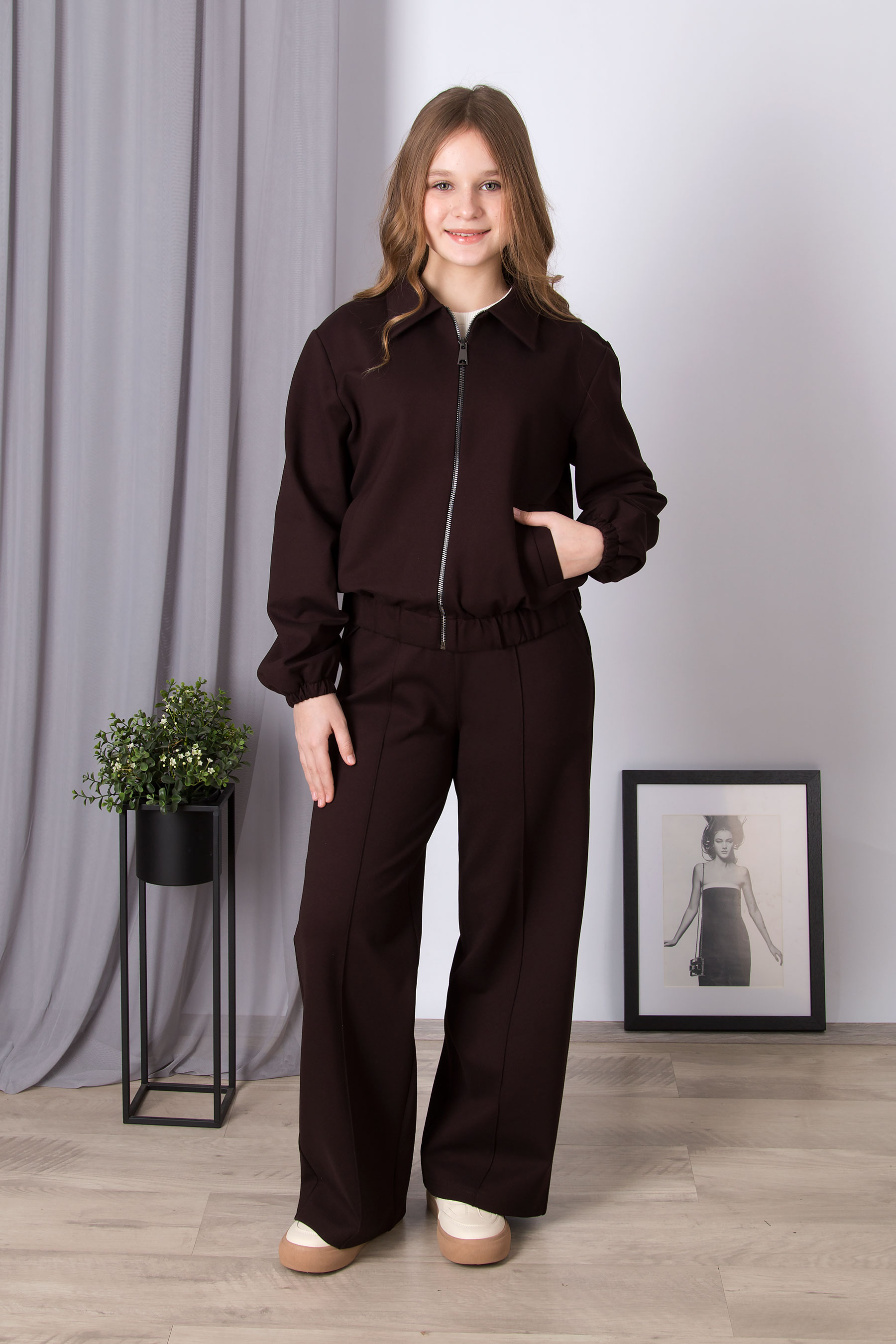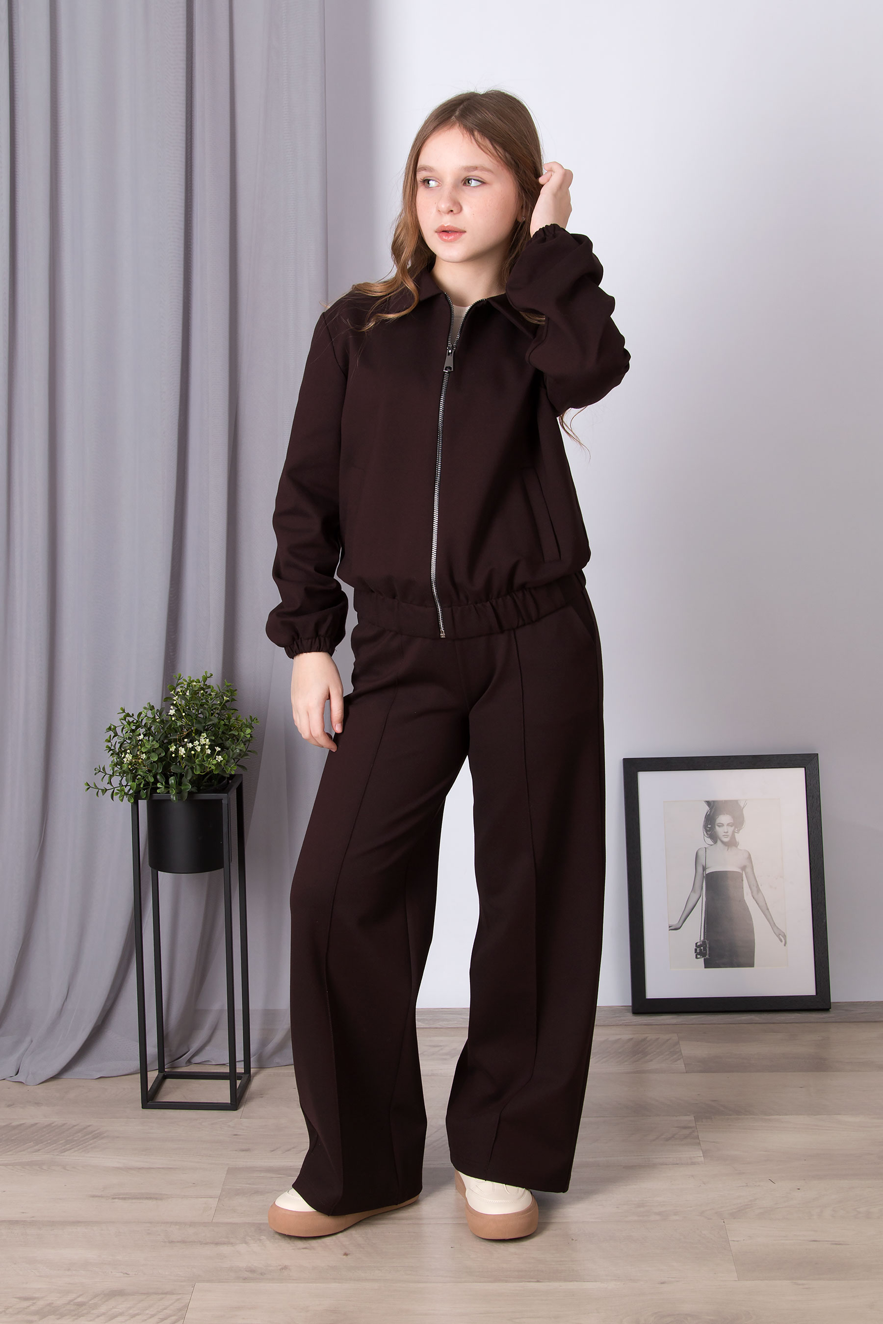 Костюм складається з бомбера на блискавці з коміром та штанів прямого крою з еластичним поясом. Вільна посадка забезпечує комфорт і не обмежує рухів, що робить модель ідеальною для школи, прогулянок та активного дозвілля