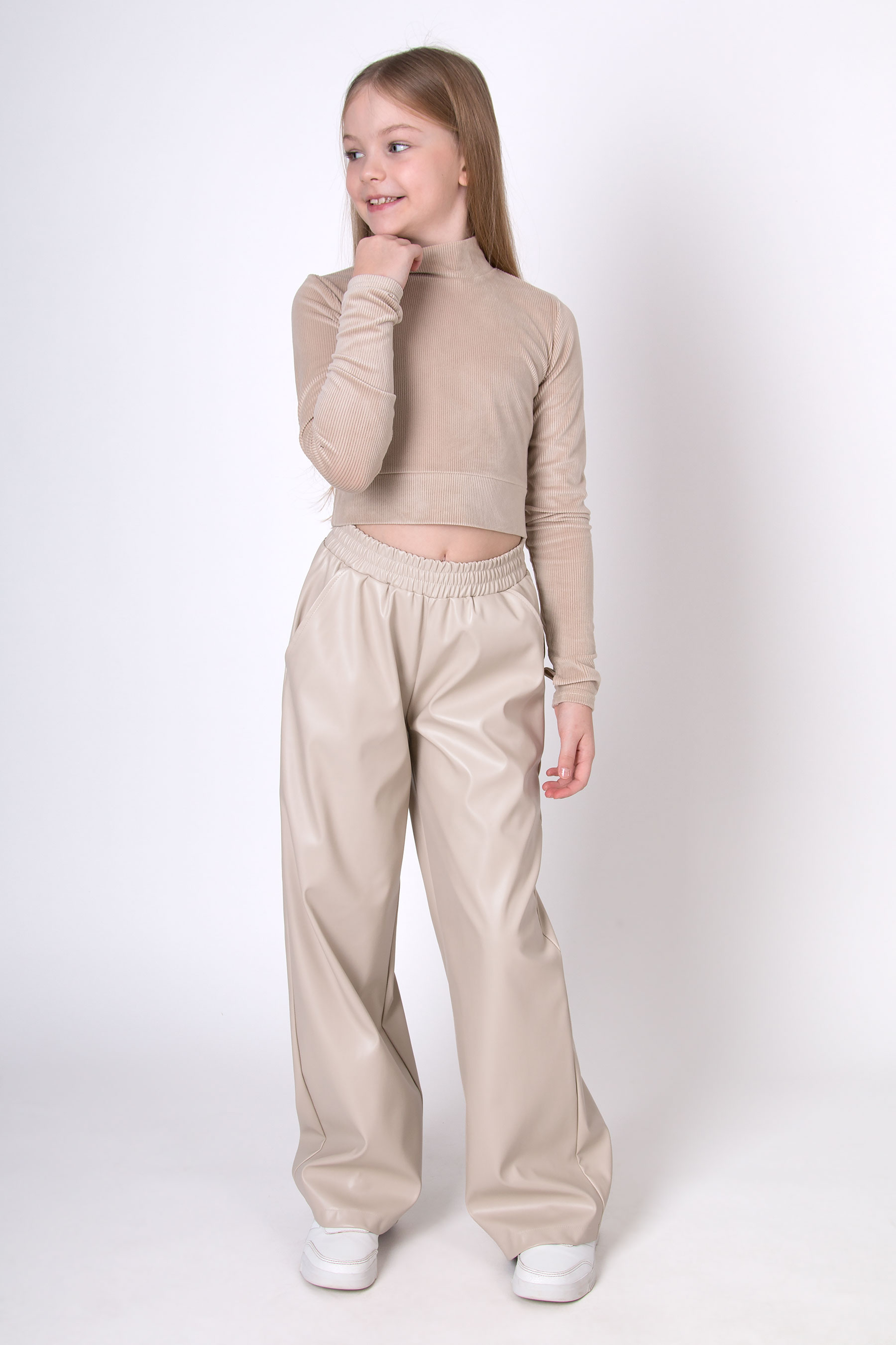 Штани з екошкіри мають легкий блиск і гладку фактуру, що додає образу виразності. Модель вільного крою з еластичним поясом на резинці забезпечує комфортну посадку. Штани з екошкіри дуже зручні , та практичні для повсякденних і стильних образів.
