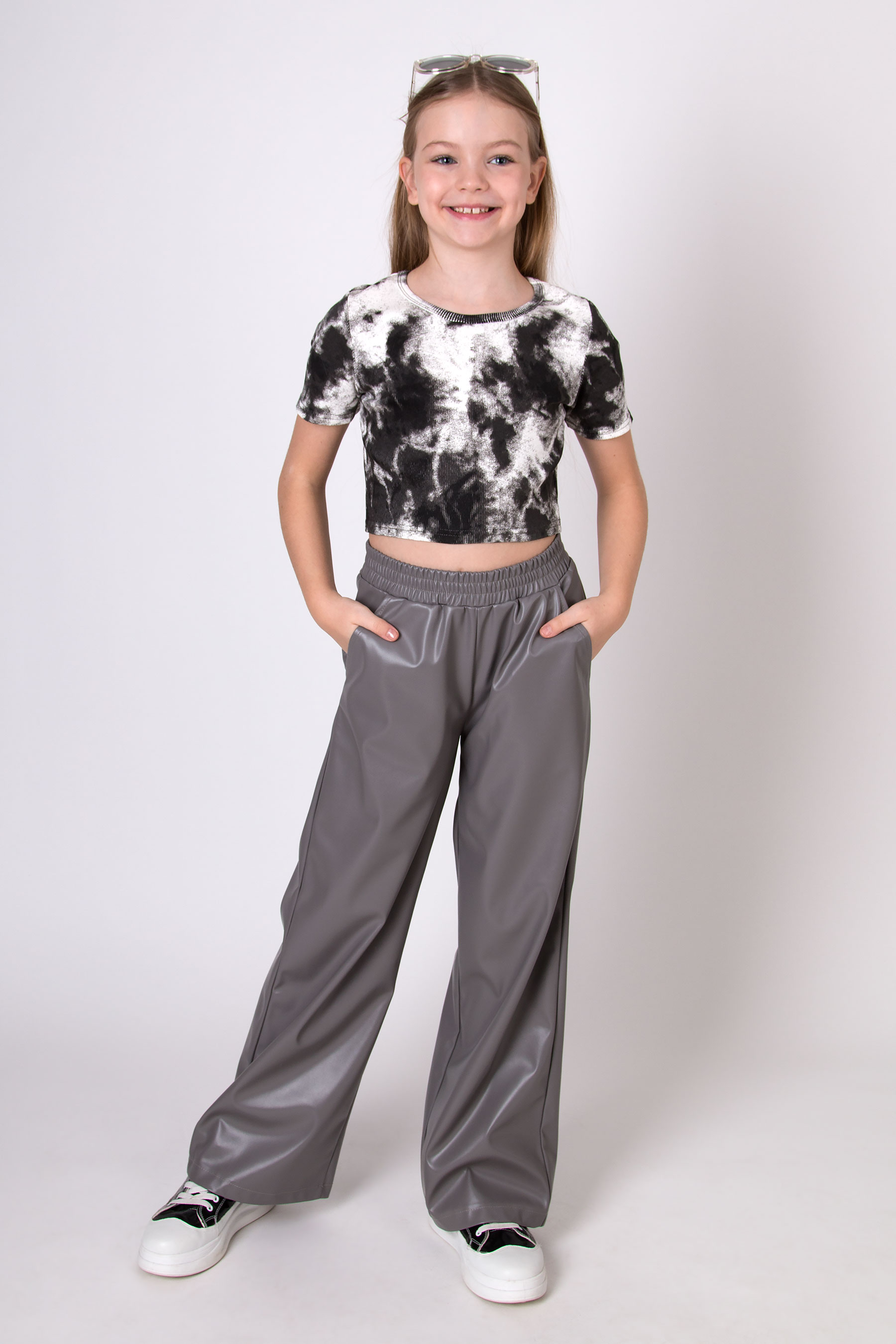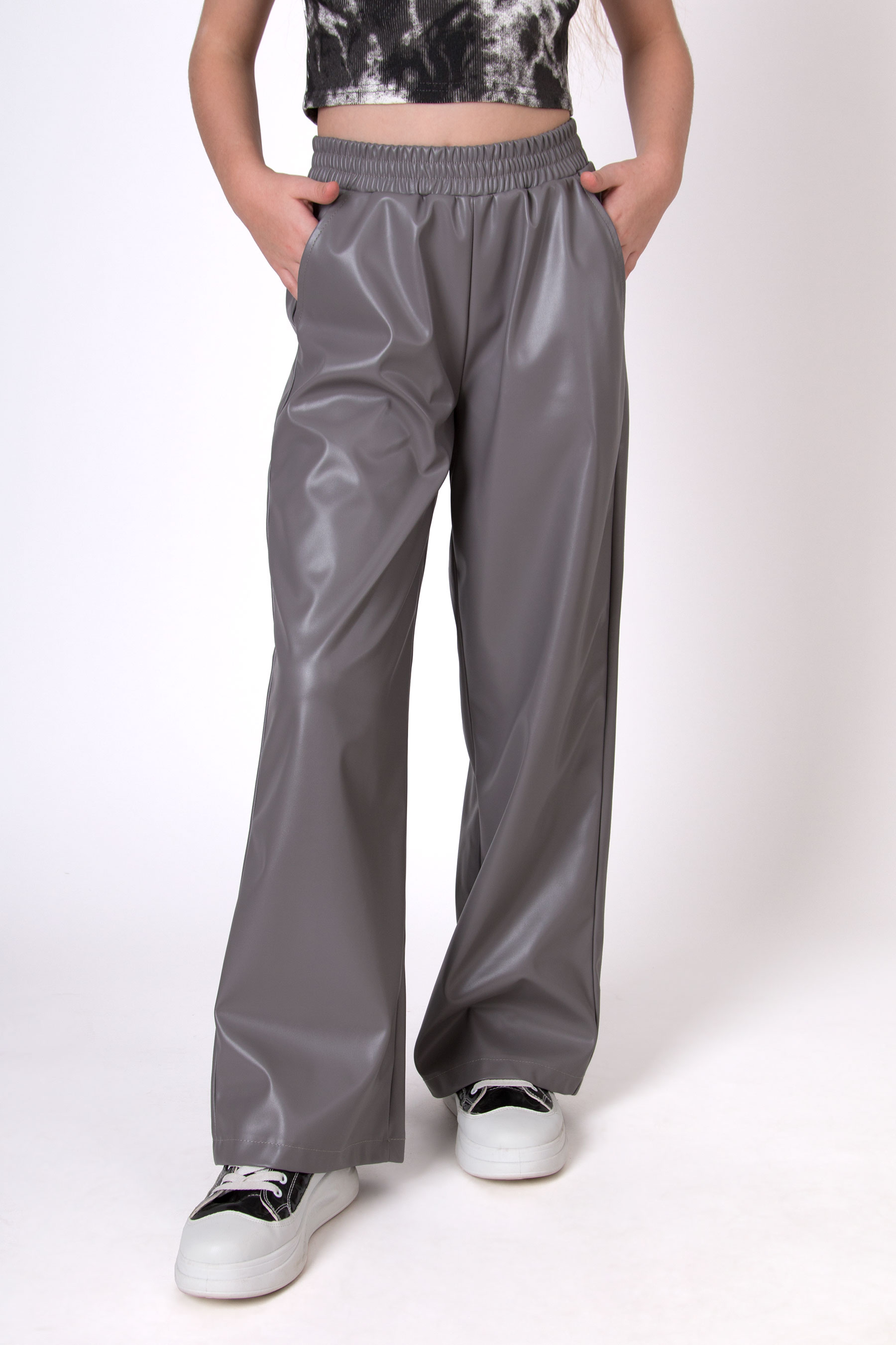 Штани з екошкіри мають легкий блиск і гладку фактуру, що додає образу виразності. Модель вільного крою з еластичним поясом на резинці забезпечує комфортну посадку. Штани з екошкіри дуже зручні , та практичні для повсякденних і стильних образів.
