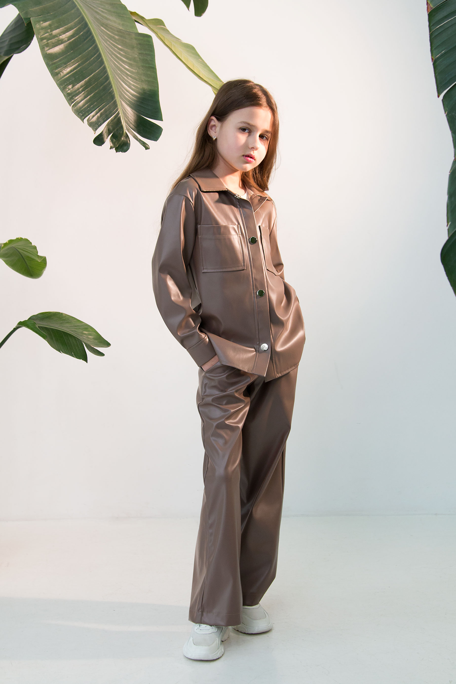 Штани з екошкіри мають легкий блиск і гладку фактуру, що додає образу виразності. Модель вільного крою з еластичним поясом на резинці забезпечує комфортну посадку. Штани з екошкіри дуже зручні , та практичні для повсякденних і стильних образів.