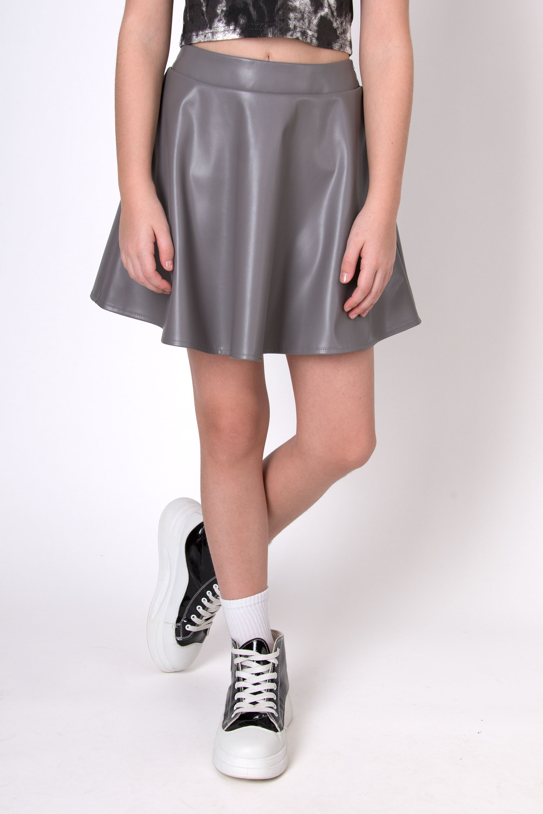Спідниця з екошкіри у фасоні «сонце» — модний акцент у гардеробі. Матеріал має легкий блиск і гладку фактуру, що додає виробу виразності. Позаду еластичний пояс, який забезпечує зручну посадку. Спідниця виглядає стильно та підходить як для повсякденних, так і для особливих виходів.