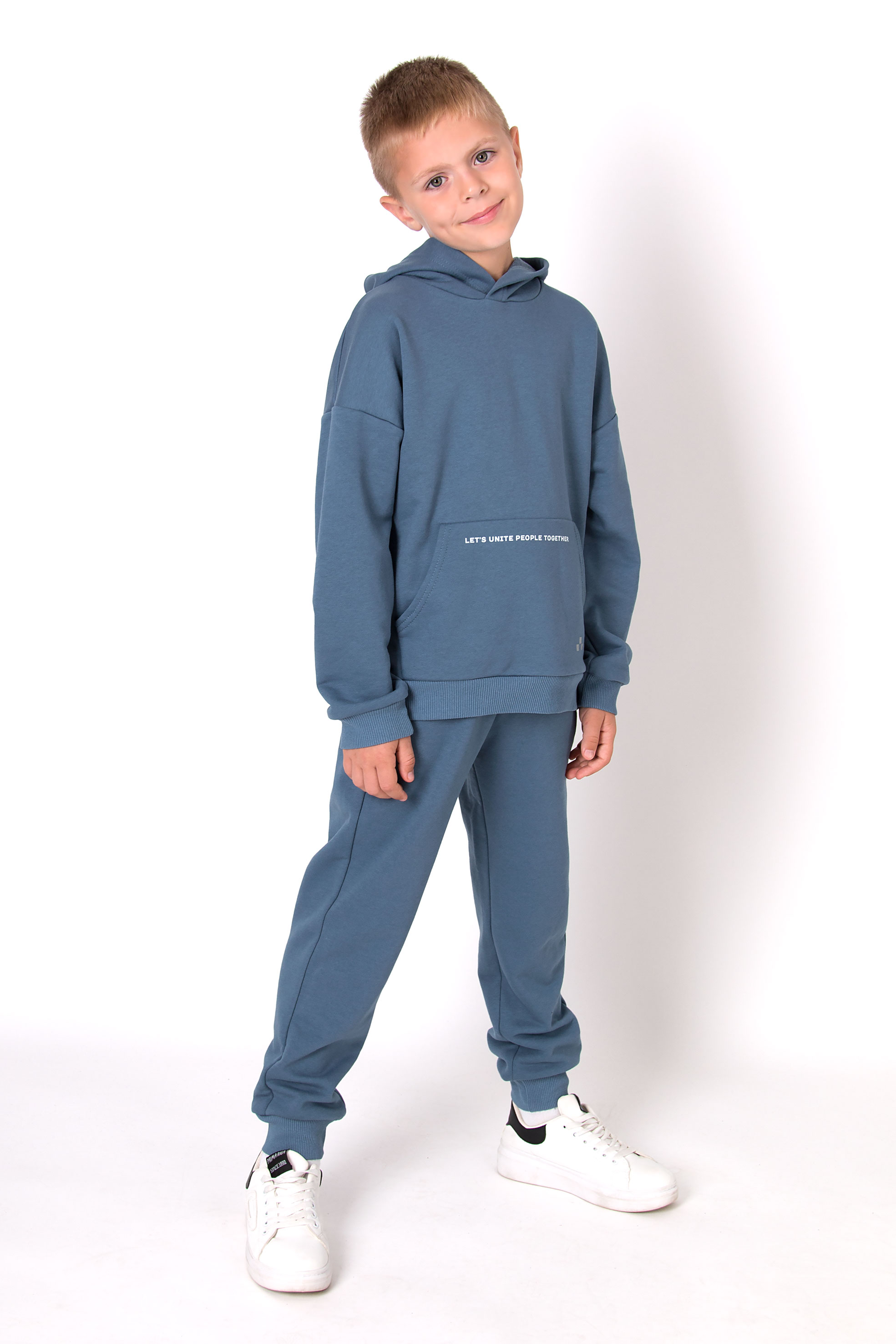 Костюм із трикотажу тринитки петлі. Худі з капюшоном і великою кишенею поєднується зі зручними штанами на манжетах. Тканина м’яка на дотик, а продуманий крій додає виробу зручності та сучасного вигляду. Яскравий акцент — принт на спині у графічному стилі з мотиваційним написом, що створює динамічний настрій.