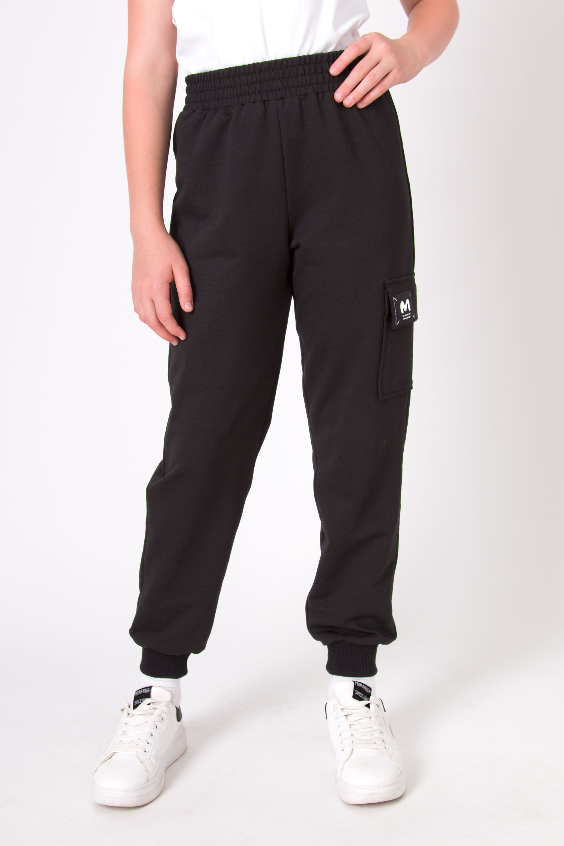 Штани з двонитки на резинці. Доповнені зручною накладною кишенею з нашивкою збоку та манжетами внизу - функціональна база для повсякденного гардероба.