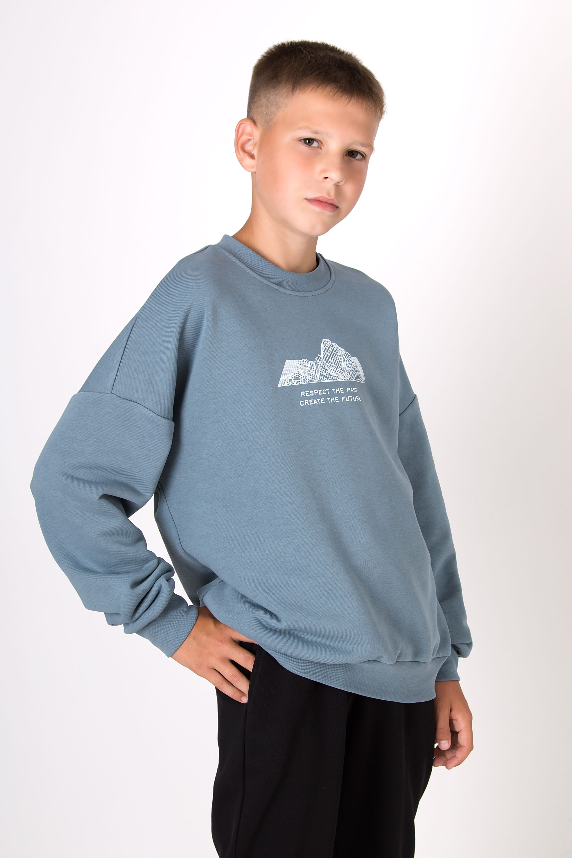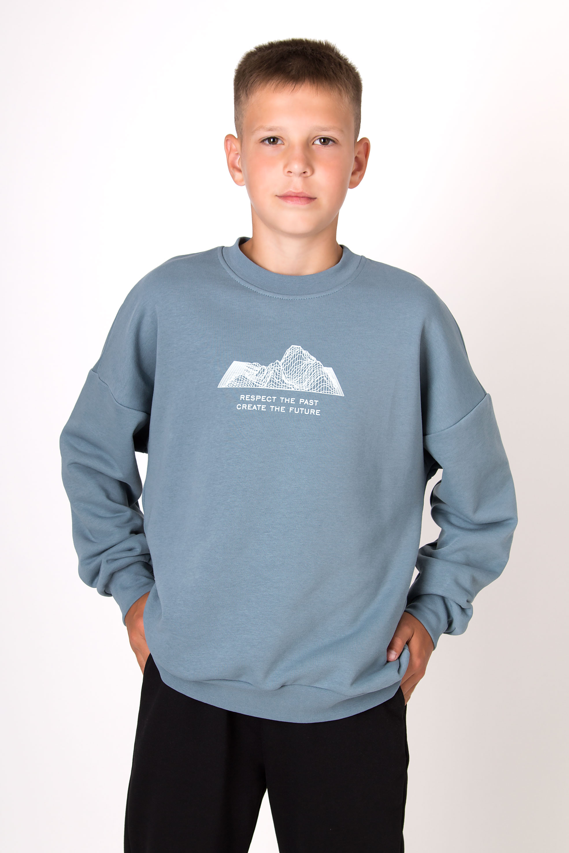 Світшот із м’якого трикотажу зі зручною посадкою та спущеною лінією плеча. Центр прикрашає принт із графічним зображенням гір та надписом. Манжети та низ на резинці — для зручності в повсякденному носінні. Добре поєднується з штанами чи спортивним низом.