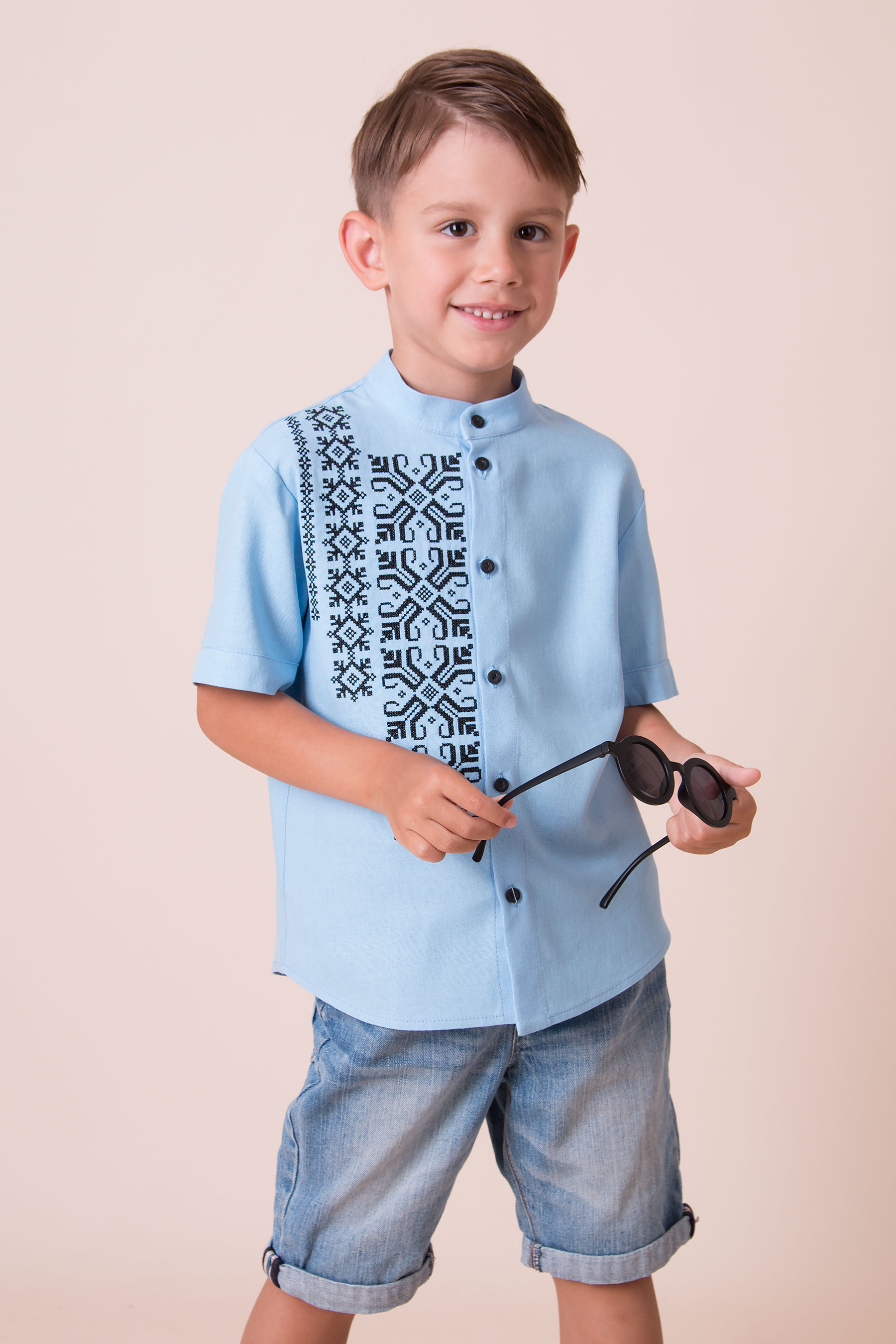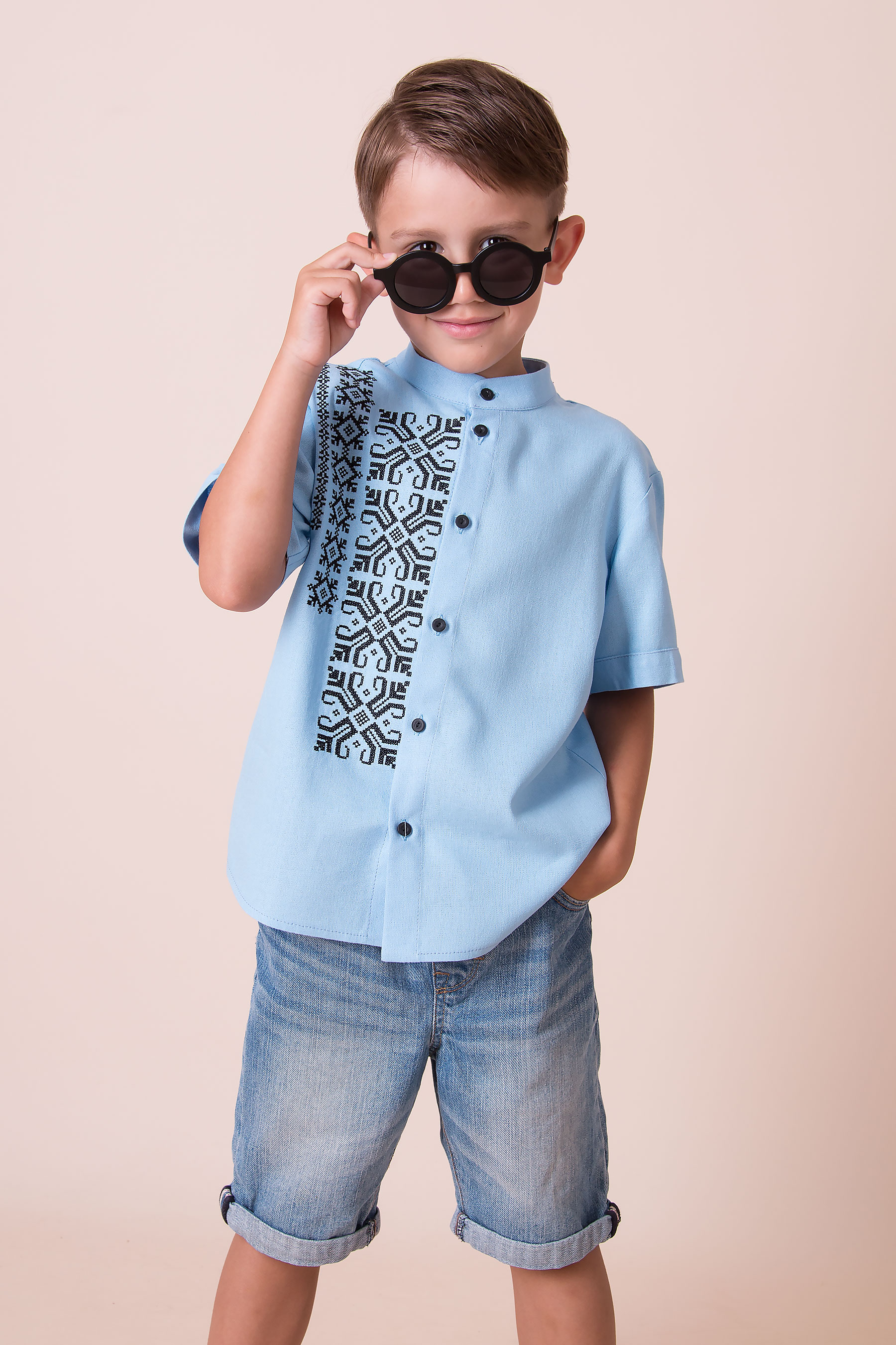 Модель із коротким рукавом і застібкою на гудзики вдало поєднує традиційні елементи з сучасним силуетом. Контрастна вишивка додає характеру, роблячи виріб доречним і для свят, і для щоденних образів.