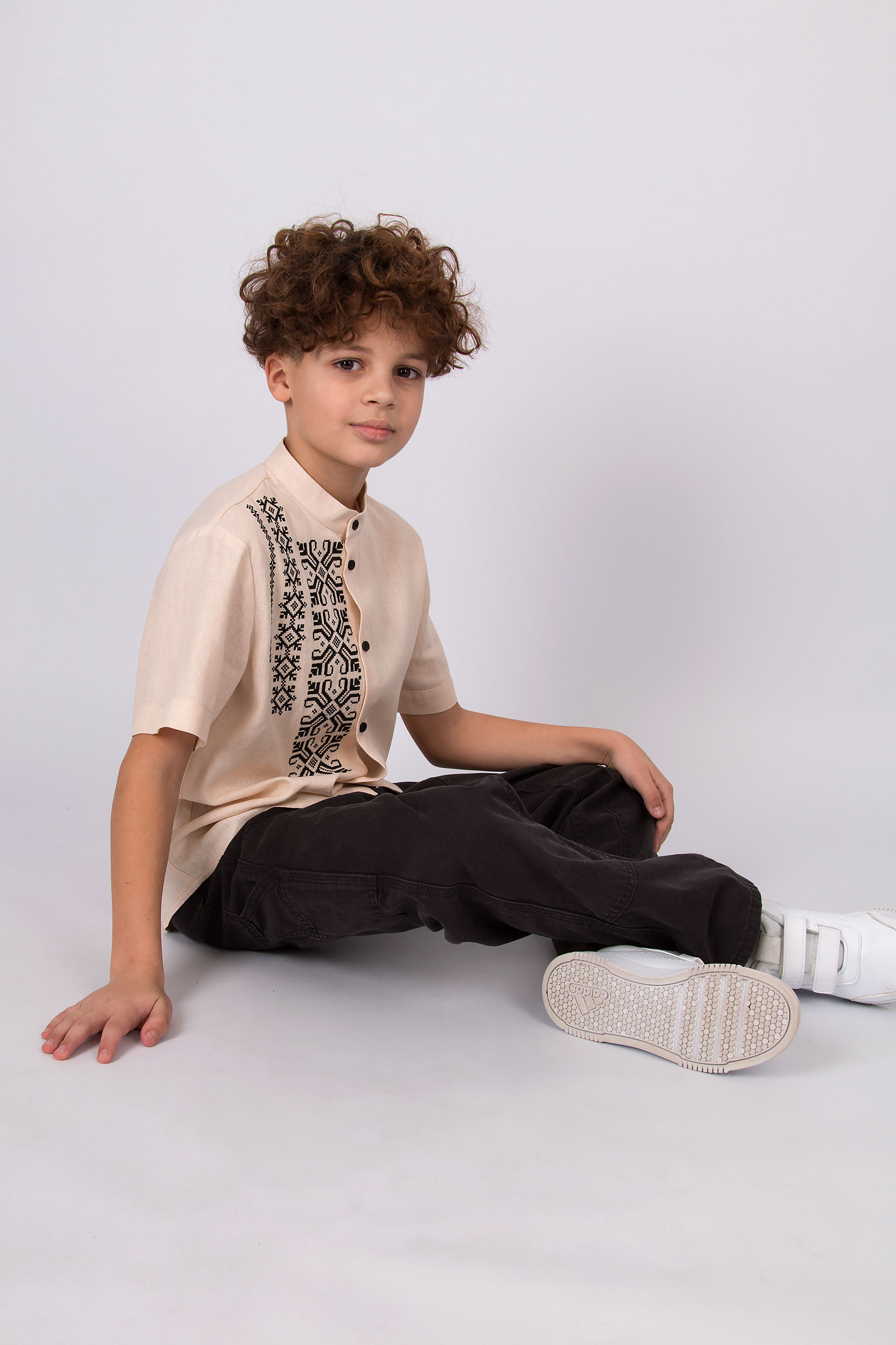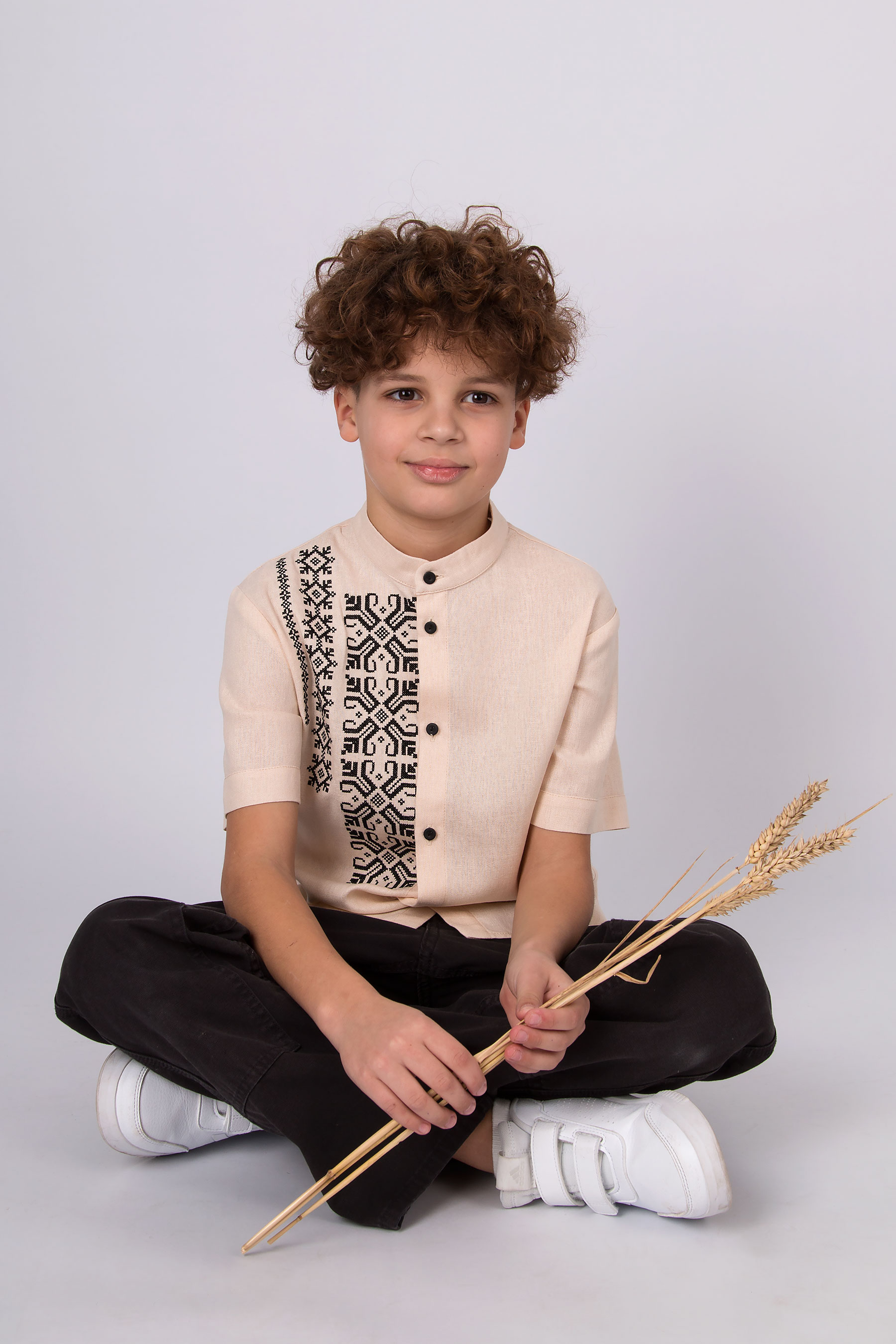 Модель із коротким рукавом і застібкою на гудзики вдало поєднує традиційні елементи з сучасним силуетом. Контрастна вишивка додає характеру, роблячи виріб доречним і для свят, і для щоденних образів.